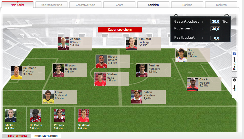 Habe nochmal umgebaut, um 3 spielende Verteidiger zu haben. Und am 1. Spieltag bin ich mit dem Geld auch im Plus.:ffft
