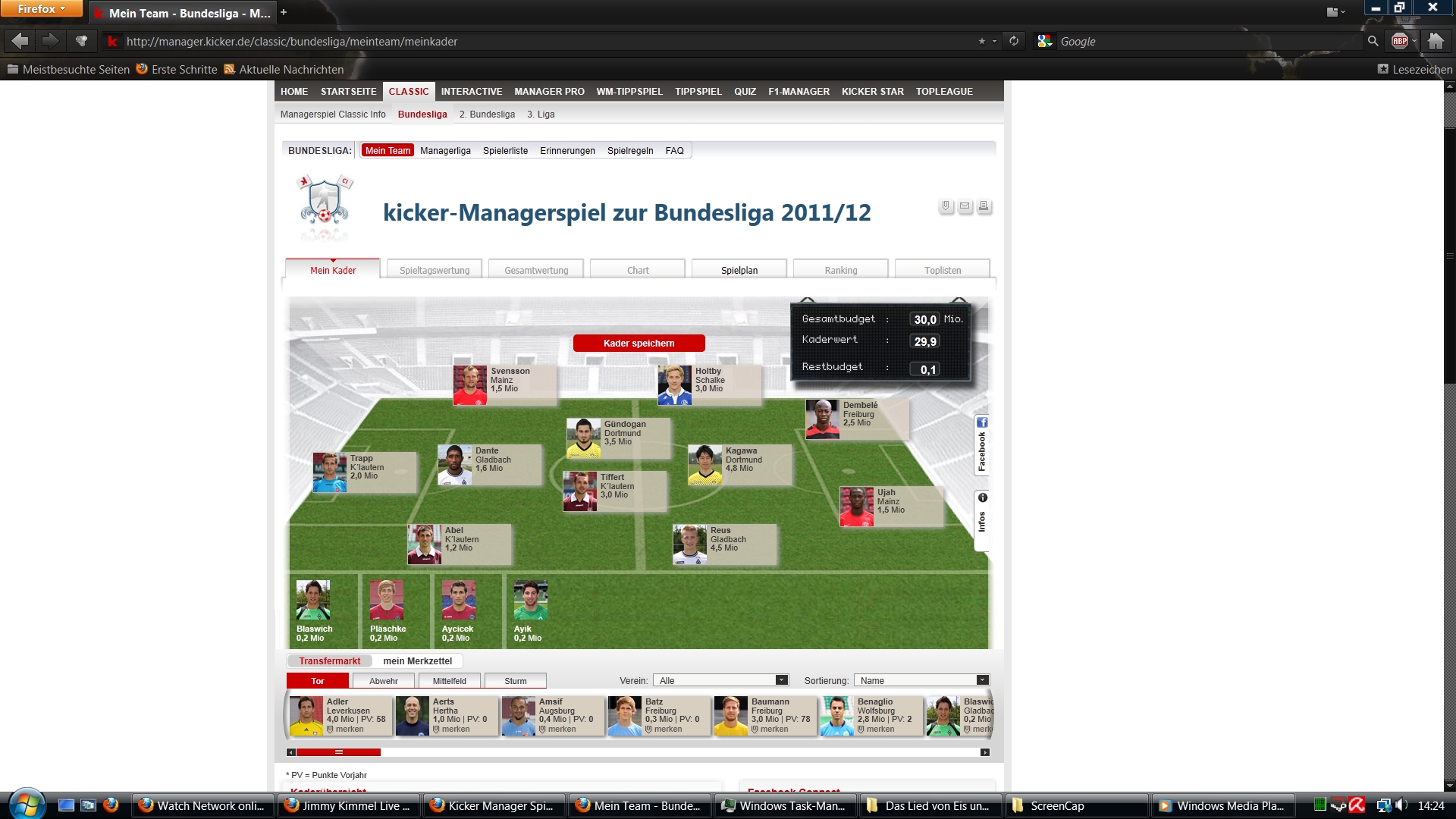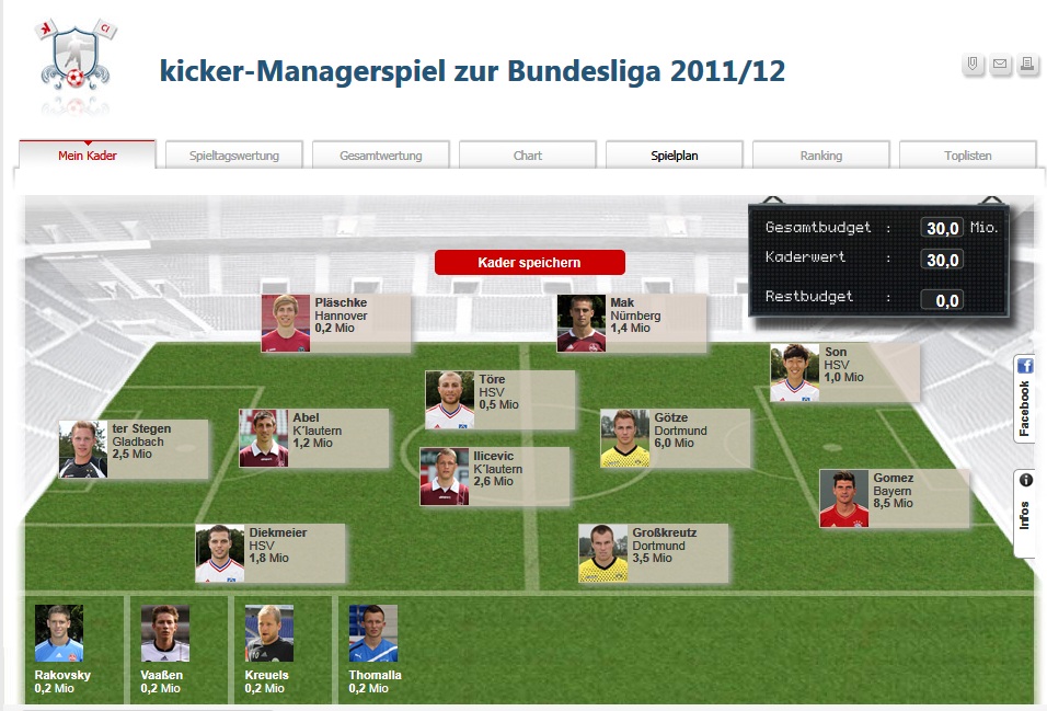 Kicker Manager Spiel - Saison 2011-2012
