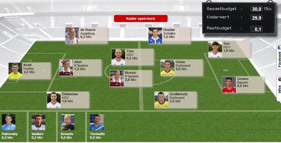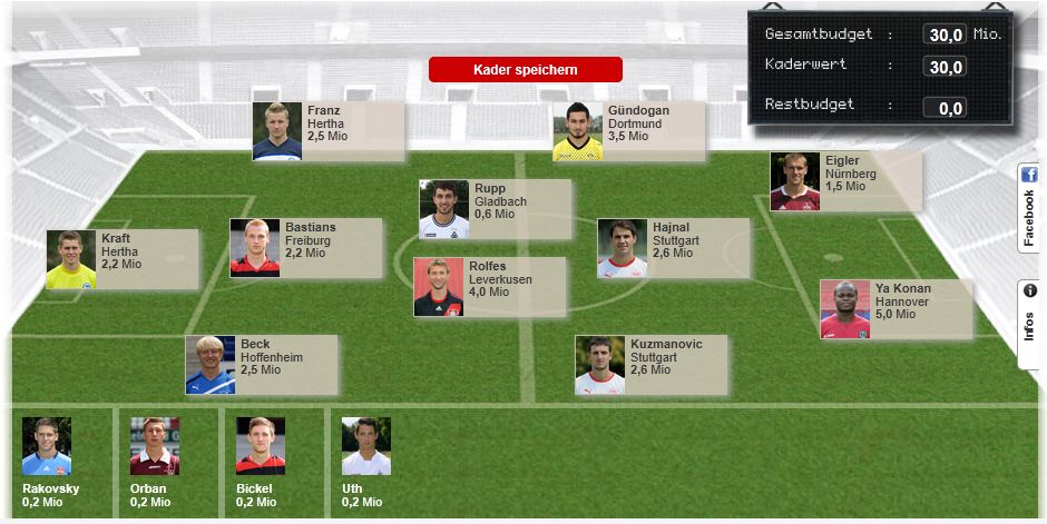 Hab mich ziemlich schwer damit getan da das Budget doch sehr begrenzt ist und die guten Spieler teilweise zwischen 5-12 Mille kosten.