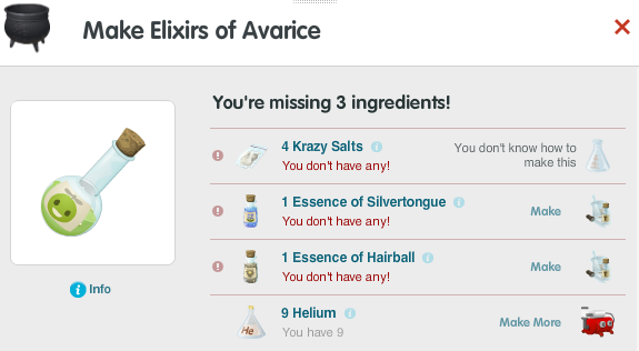 Für alle, die neugierig sind, welche Zutaten benötigt werden für die Tränke (5 kann ich mit Potionmaking I herstellen):