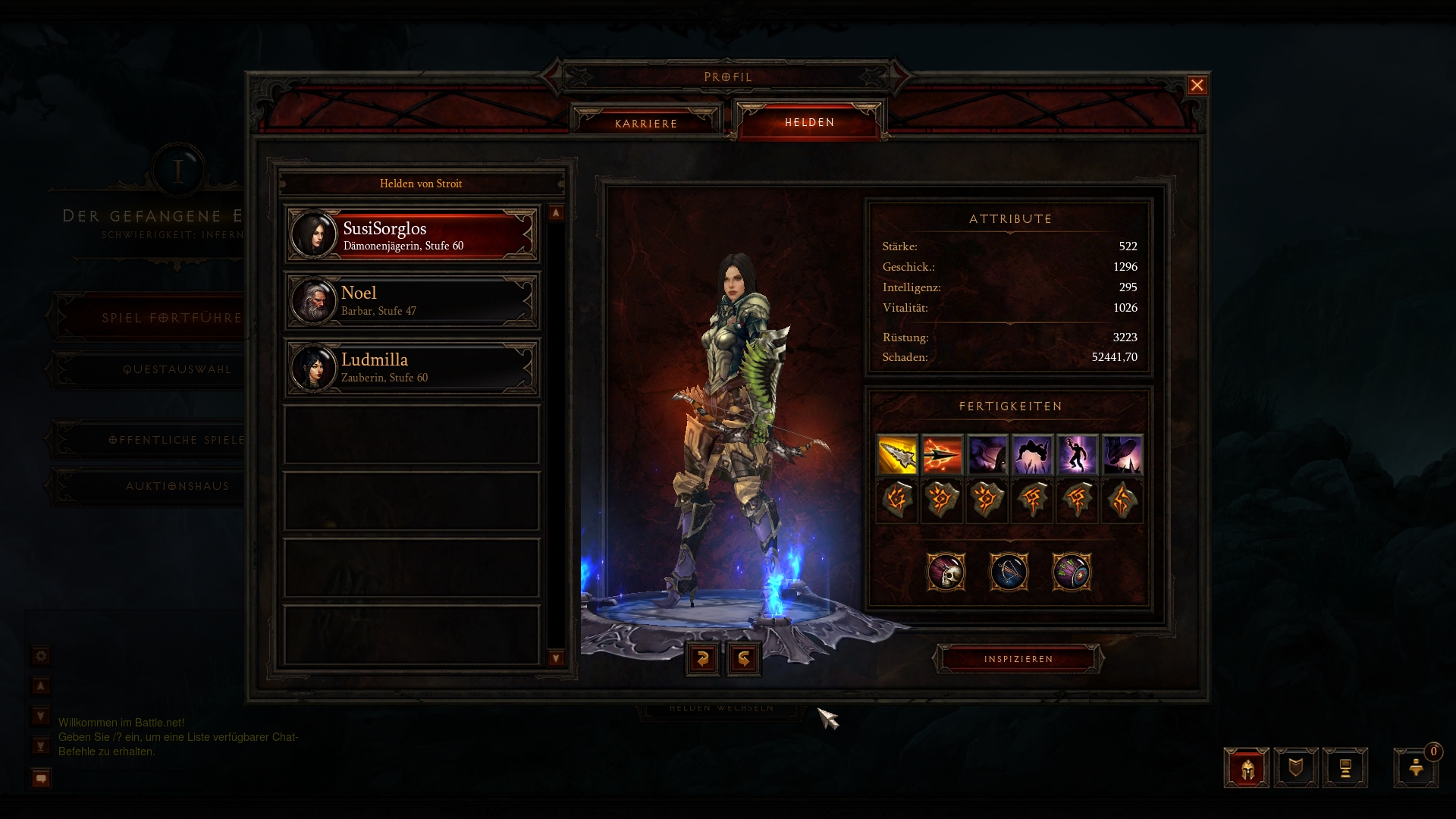 Steht derzeit in A4 Hölle, bekommt langsam aber Probleme bei einigen Bossen. Muss wohl die Defensive etwas stärken, bisher versuche ich alles zu töten bevor es mir zu nahe kommt. Klappt oft, aber nicht immer.