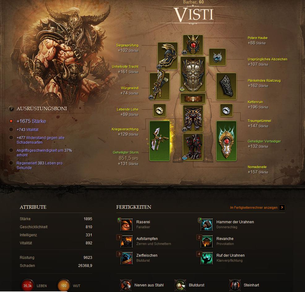 Vom Barbar hab ich grad keine Bilder, der ist noch A1 NM. Skills hat der wenn ich mich richtig erinner Raserei und seismisches Beben, dann noch Revanche und Kriegsschrei. Rest muss ich nachgucken.