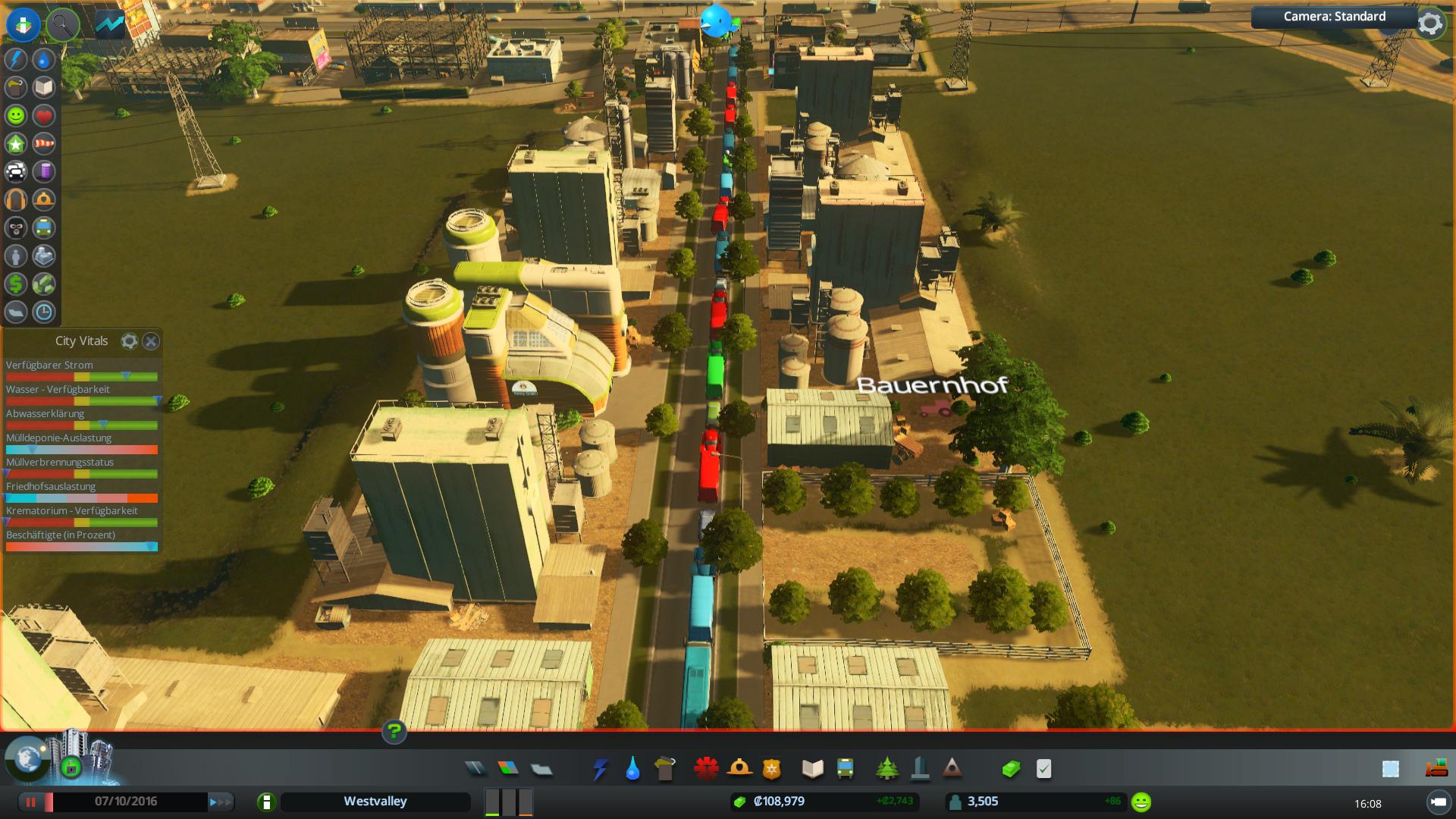 Stau, Stau, Stau, Mega Stau usw......... Da eine U-Bahn teuer ist, verbreitere ich die Straßen bzw. füge neue hinzu um so die alten zu entlasten. Züge helfen natürlich auch, aber das Personen und Warenbahnnetz muss gut geplant sein.