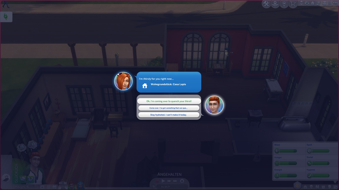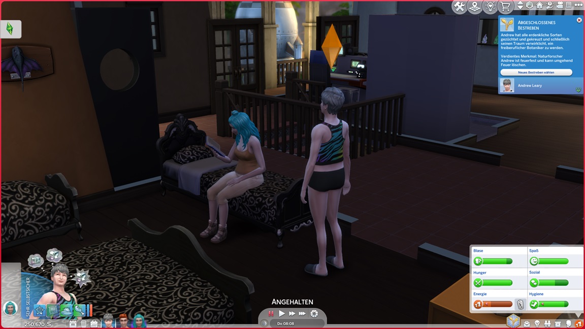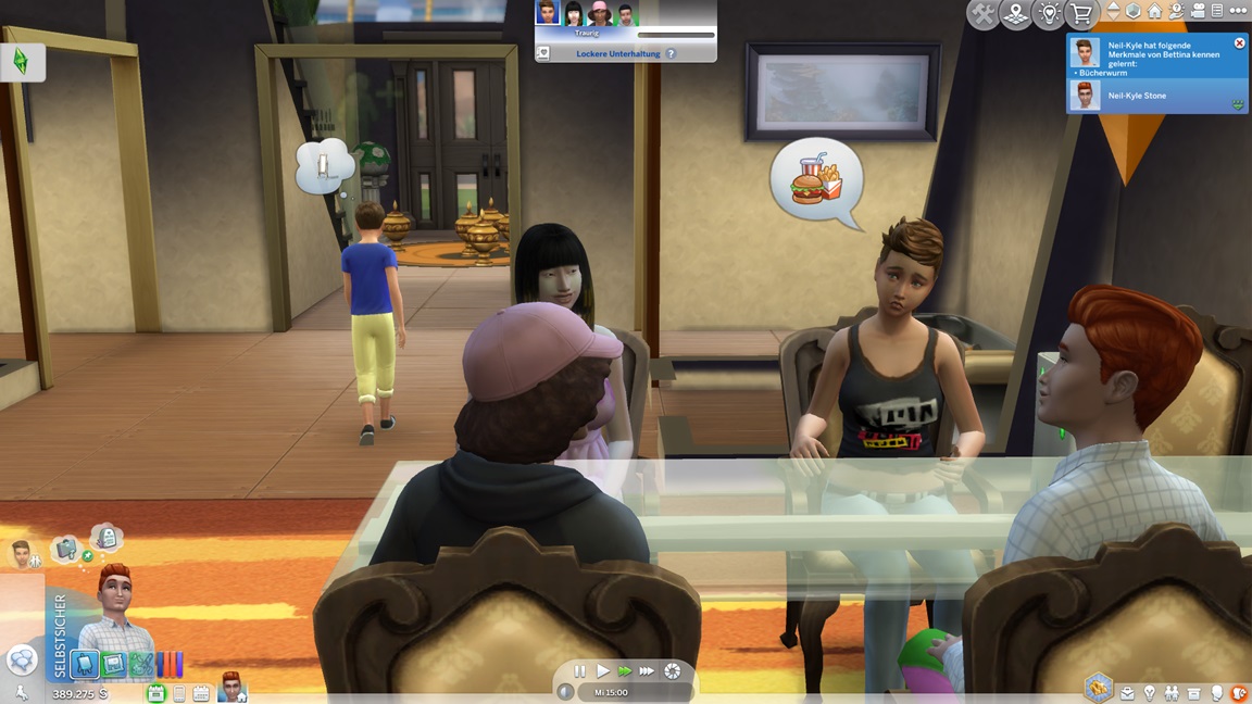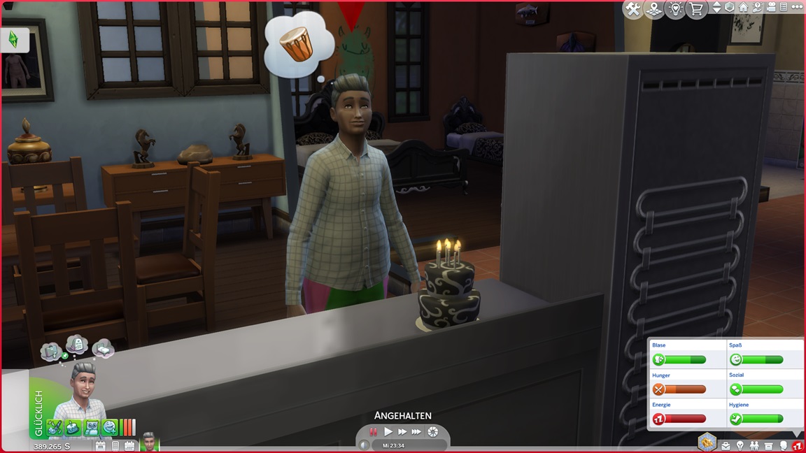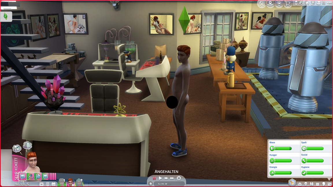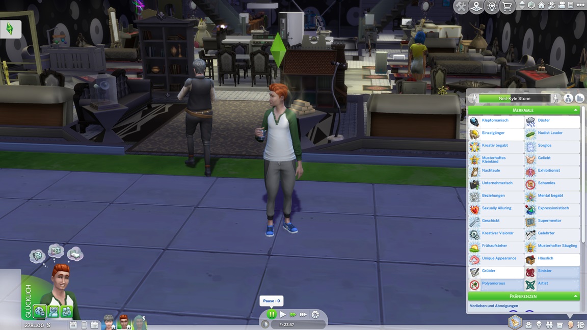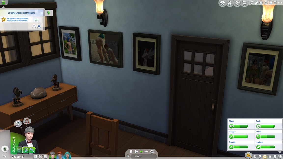 Da bedeuten die Bilder des letzten Tages einen gewaltigen Schub. Er kann sich außerdem vier Simoleons auszahlen lassen, was genügt.