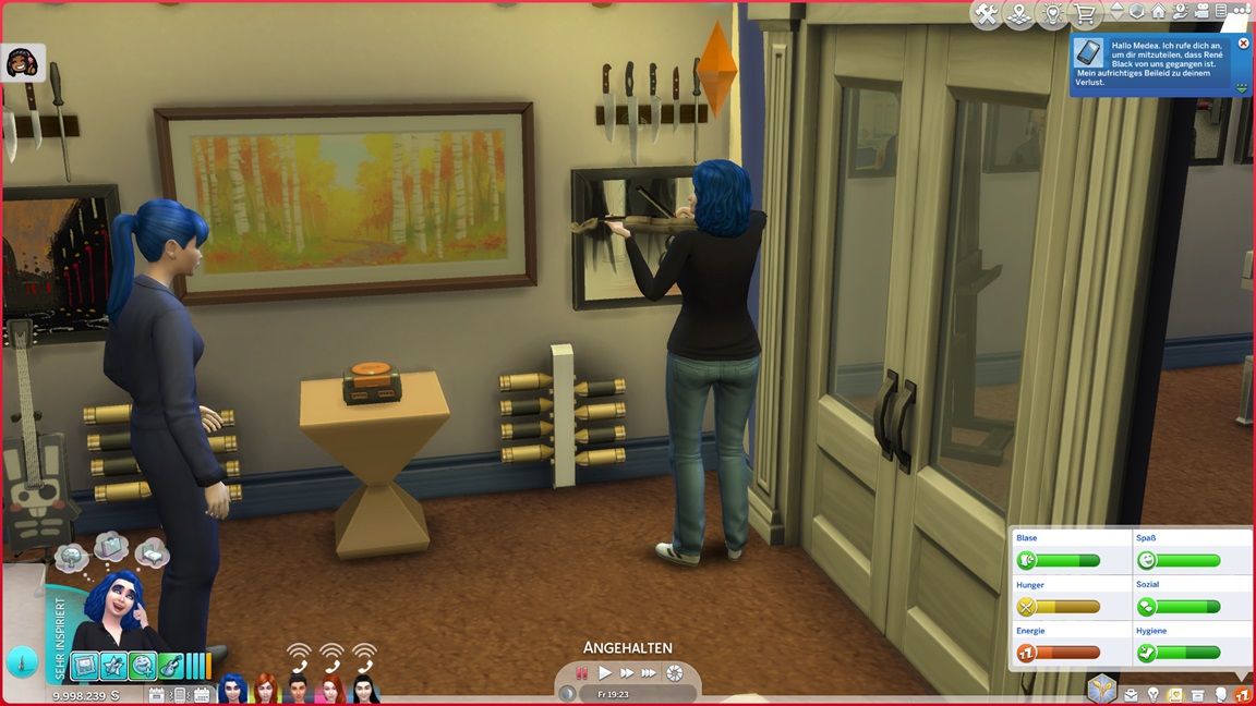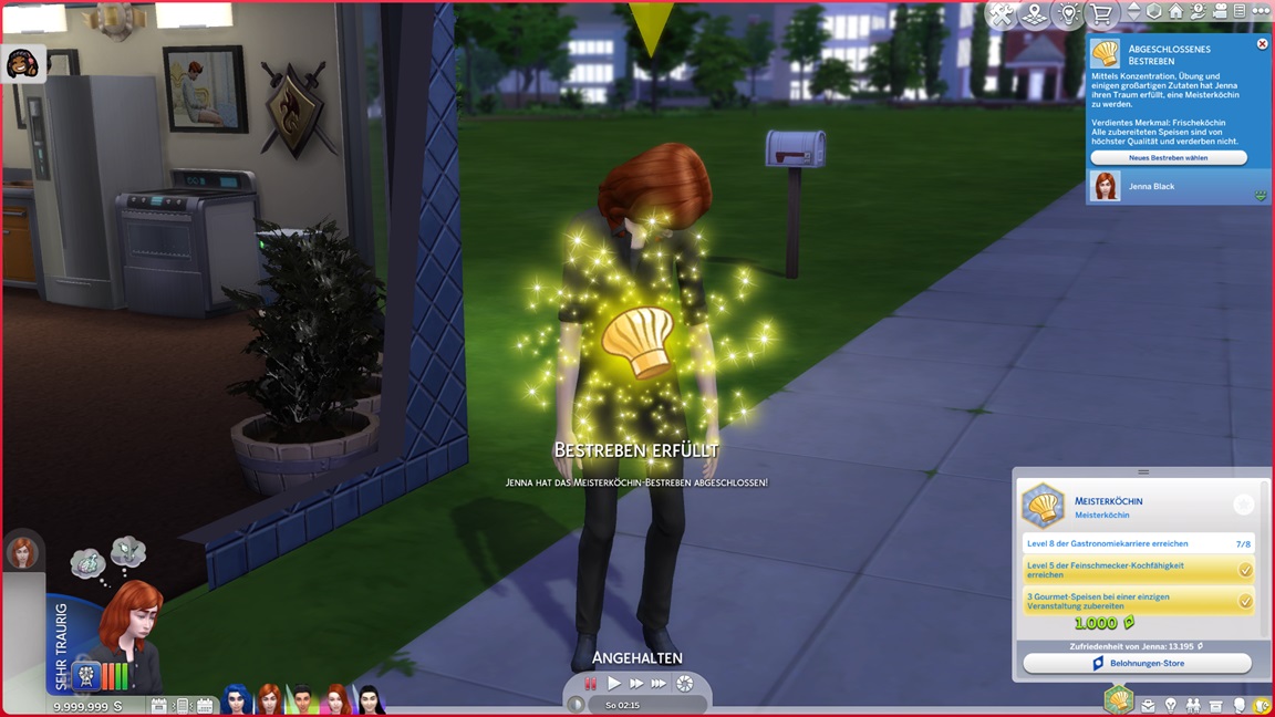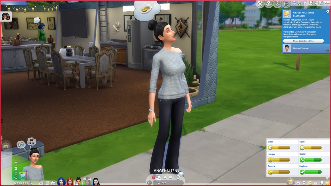 ... hakt Renaissance-Sim ab und schielt dann auf Schmelzkäse. Abgesehen davon fehlen ihr nämlich nur noch die beiden Familienbestrebungen sowie Angelei (plus Partys und Schurkentum).